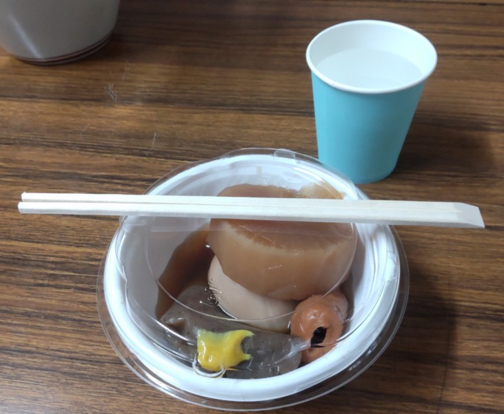 20日(日)は、老人クラブの活動にお邪魔しました。まだ食事会は厳しいということで、一瞬のコミュニケーションですが、おでんのテイクアウトをされました。約1時間の間に、80食が完売ということでした。
