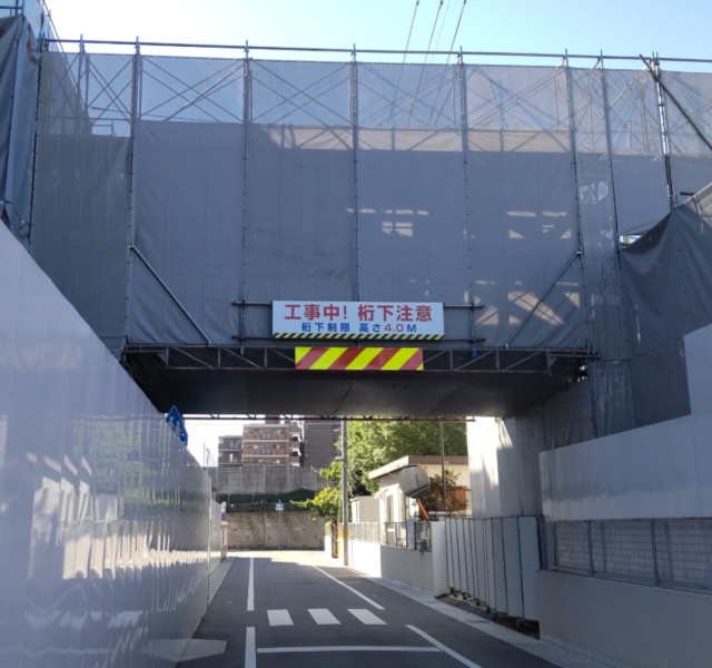 2枚目は、建て替えに伴って安井小学校に新設される校舎と体育館を結ぶ渡り廊下です。いよいよ姿を現しました。