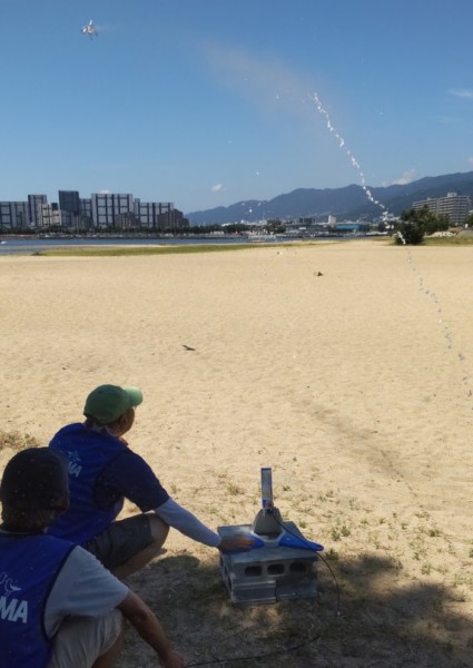 お天気に恵まれ、とても暑いなか、発射台の故障トラブルもありましたが、参加者の温かいご理解のもと、和気あいあいと水にもかかりながら楽しい時間を過ごしてもらうことができたと思います。