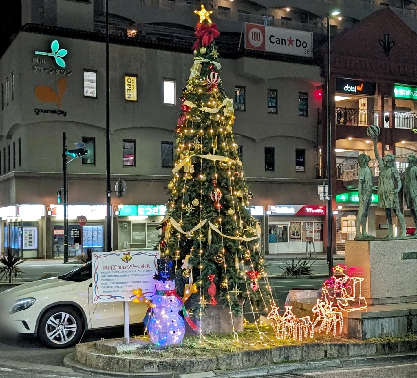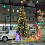 写真は、帰り道に撮影した阪急夙川駅ロータリーに設置されたツリーてす。