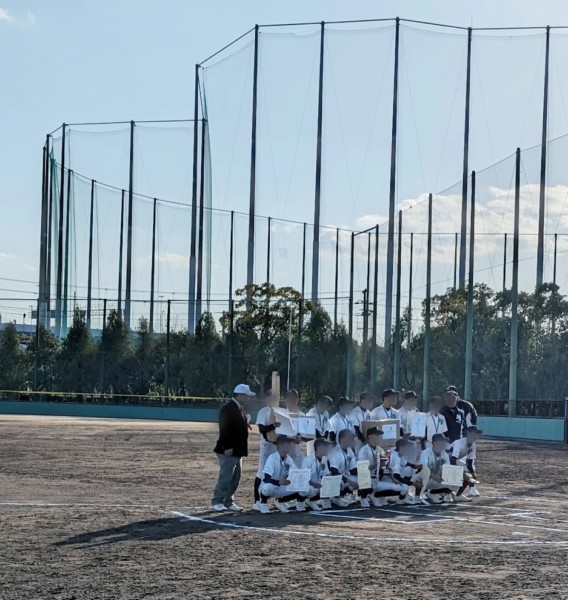 午後からは、鳴尾浜臨海公園野球場において行われた第2回西宮市中学生硬式野球大会の閉会式に出席し、優勝、準優勝チームの表彰をするとともに主催者の挨拶を述べました。
