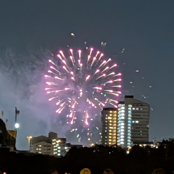 昨晩、予定が空き、家族とともに天神祭の花火を見に行ってきました。とは言っても、混雑が苦手なので少し遠くの橋から。