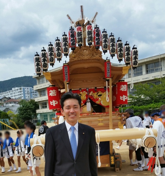 (公)11時~ 越木岩一番地車御披露目式典にて挨拶(@北夙川小学校体育館)