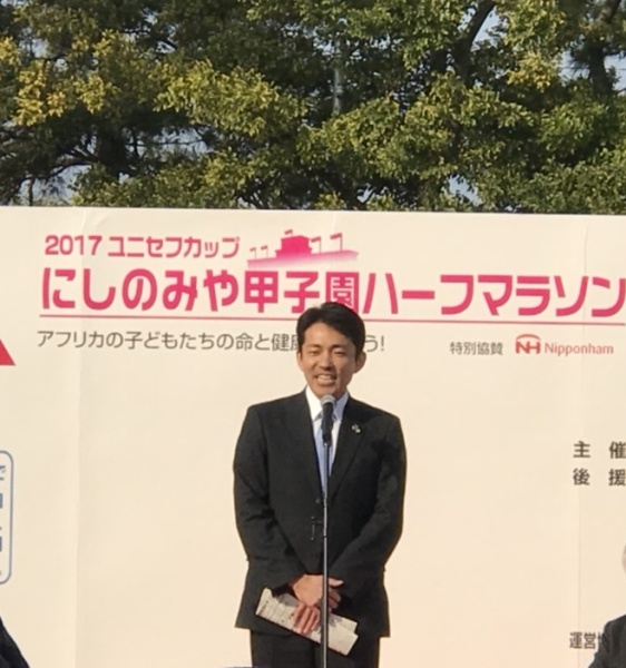 (公)9時~にしのみや甲子園ハーフマラソン 開会式にて祝辞(於:武庫川河川敷)
