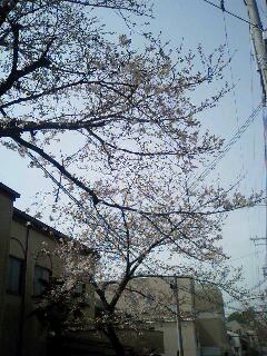 今日、会合に向かう前に、家の前にある桜が花を半分くらい咲かせているのを見つけました。