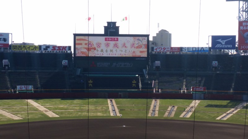 令和2年西宮市成人式が、初めて甲子園球場で行われました。