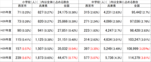 中学校では減少傾向にありましたが、平成28年度以降、急増しています。
