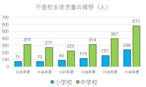 西宮市でも不登校の児童生徒が急増しています。