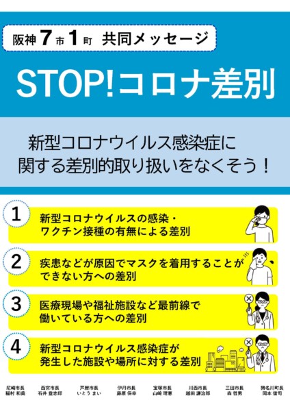 また、コロナ差別につきまして、人権の観点からも令和2年8月に「STOP!コロナ差別」、また、令和2年12月には「「誰か」のこと じゃない。」というポスターを作成し、市内の学校また公共施設等に掲示するなど、その周知に努めております。